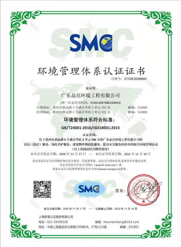 環(huán)境管理體系證書